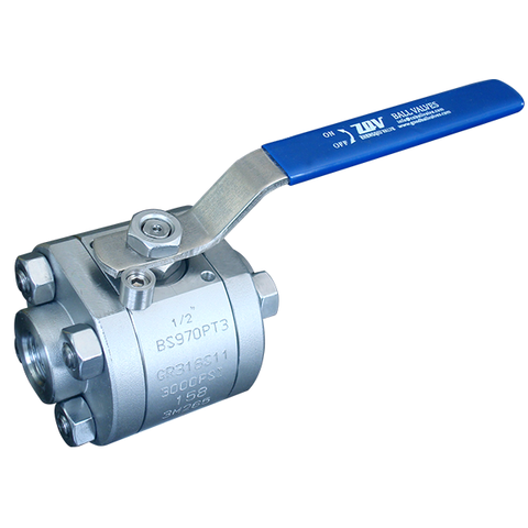 บอลวาล์ว A105เกลียวเหล็กกล้าคาร์บอนปลอมแปลงขนาด1/2นิ้ว3000psi